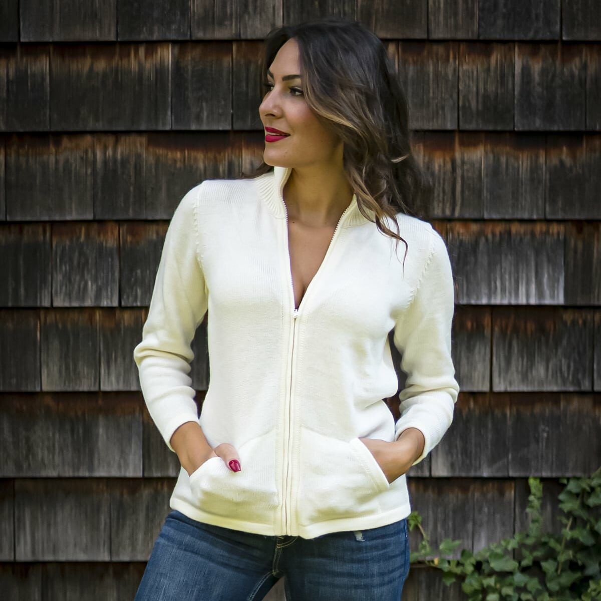 Gilet mixte en laine de Lama à manches longues avec deux poches.