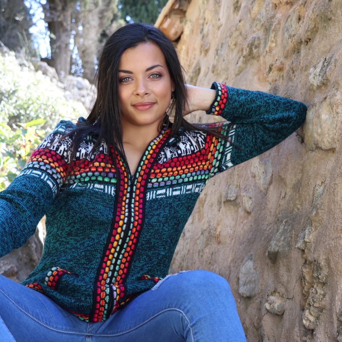 Le Gilet Sangay est un gilet zippé à capuche en laine d’Alpaga du Pérou.